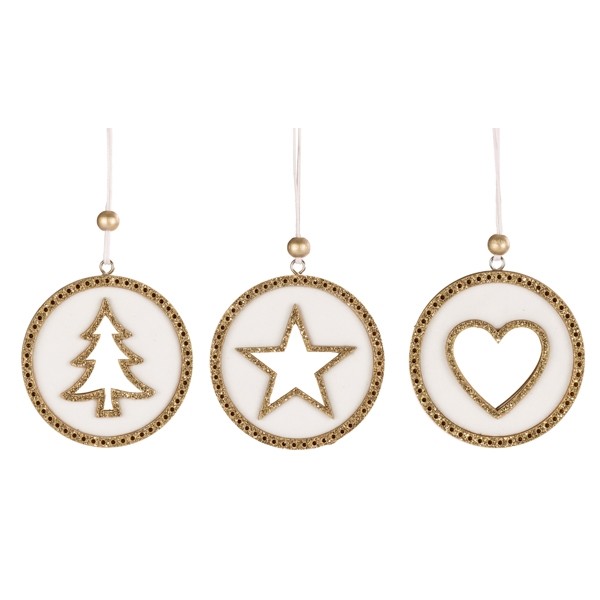 Adorno navideño metálico pintado a mano, genial para decorar el árbol o cualquier rincón de la casa.