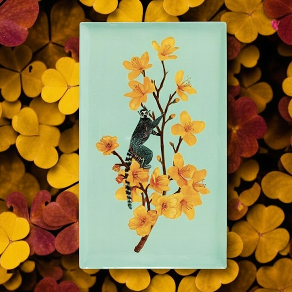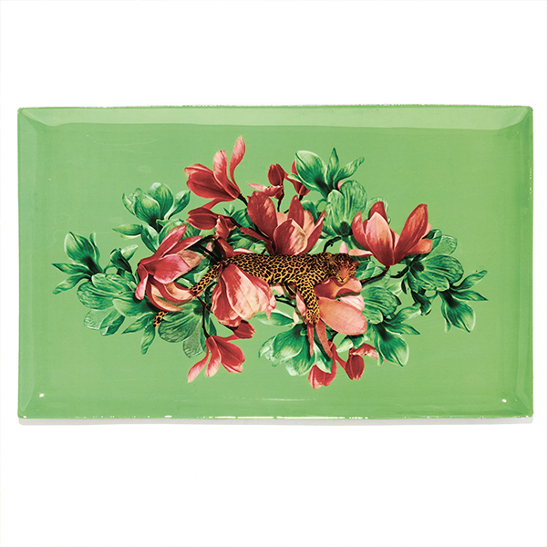 Esta bandeja de hierro acabado con esmalte pertenece a la colección Curiosito de Gangzaï.