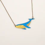 Collar con una ballena dorada y un remolino marino azul: una historia en miniatura de melodías oceánicas.
