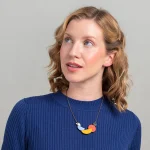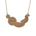 El collar, compuesto por incrustaciones de madera, mide 63 mm x 33 mm y la cadena se puede ajustar a 48 o 53 cm.