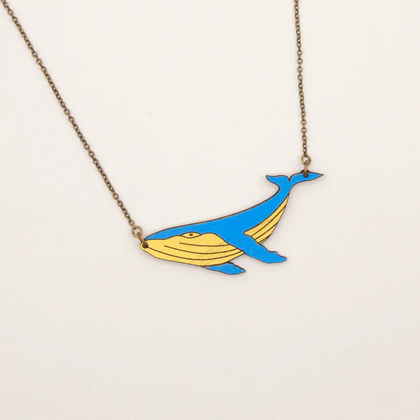 El collar, compuesto por incrustaciones de madera, mide 63 mm x 33 mm y la cadena se puede ajustar a 48 o 53 cm.