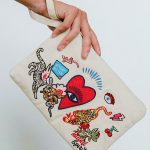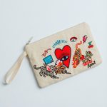 Neceser con cierre de cremallera superior y asa de mano lateral. Detalle de múltiples bordados con motivos gráficos y animales. 100% algodón.