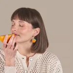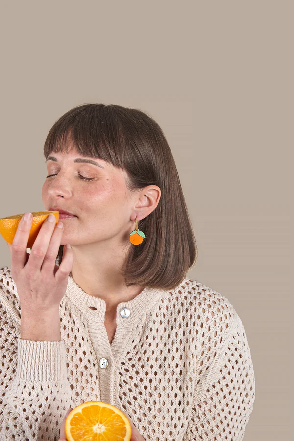 Pendientes de aro con dos naranjas y hojas para un look afrutado, dulce y atrevido.