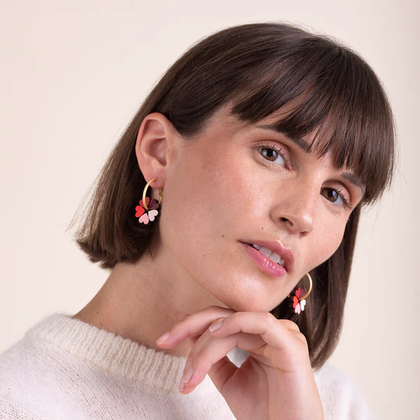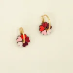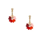 Pendientes de aro con una pieza en forma de flor compuesto por cinco corazones en tonos rojos, desde rosa claro hasta granate.