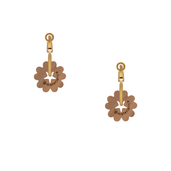 Cada pieza mide 20 mm x 20 mm y se presenta en un aro de 25 mm chapado en oro con cierre de seguridad.