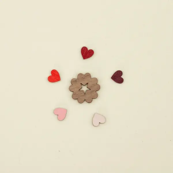 Cada corazón está pintado a mano en un color diferente, incluyendo: rosa pálido, rosa pastel, rojo, rojo oscuro y granate.