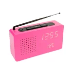 Radio reloj despertador en color magenta en la que podrás escuchar tus programas de radio favoritos a cualquier hora. Además, esta radio de madera también muestra la hora, la fecha y la temperatura ambiente.. ¡Y puedes utilizarlo como alarma!