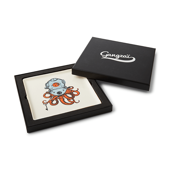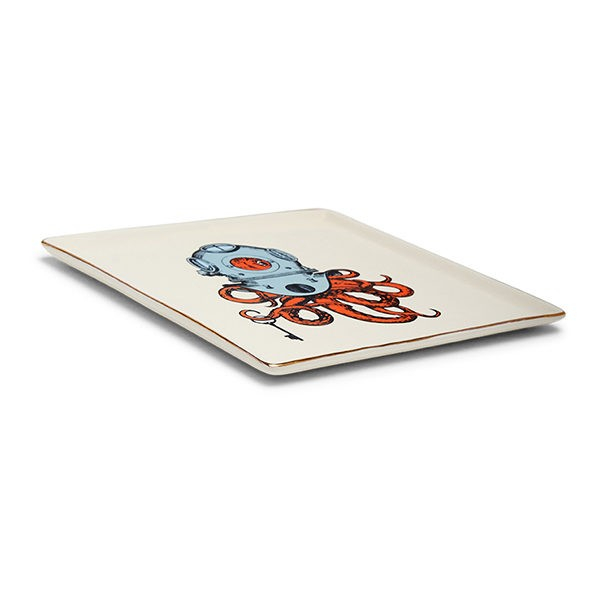 Bandeja de porcelana diseñada por Gangzaï pintada y acabada a mano.