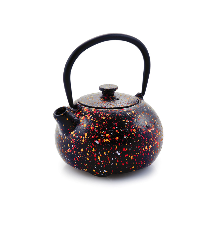 Tetera de hierro fundido con interior esmaltado y filtro de acero inoxidable.
